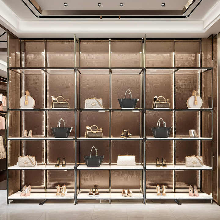 Nome del prodotto:Scaffali da parete in acciaio personalizzato in metallo eccellente per il negozio di borse