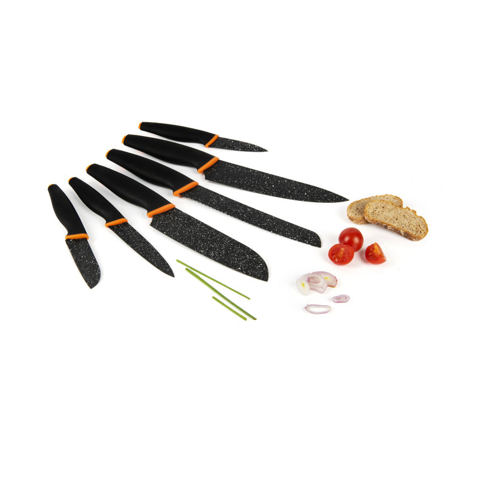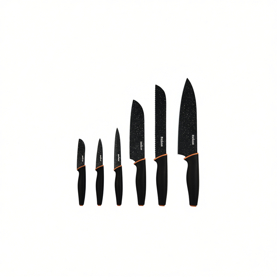 Set di 6 coltelli da chef Excelsa in acciaio nero, con lama intera e rivestimento antiaderente