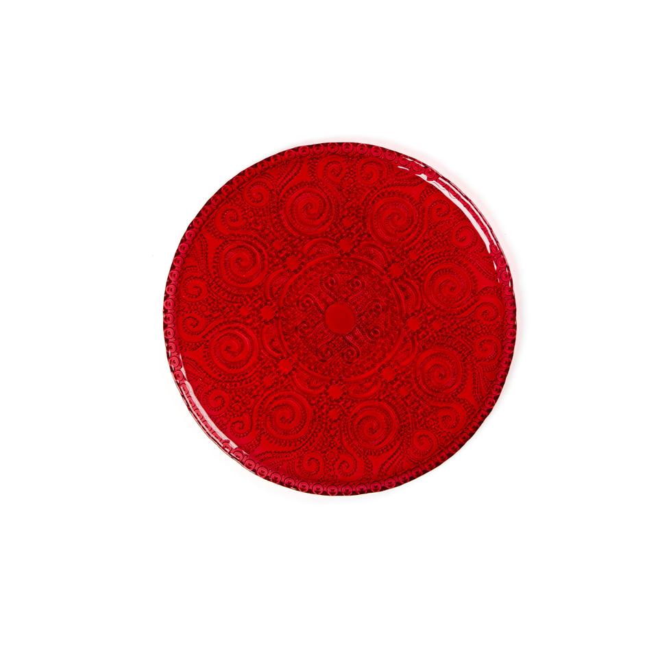 Vassoio Decorativo in Vetro Rosso Arabesco Excelsa 31x1.5x31 Cm