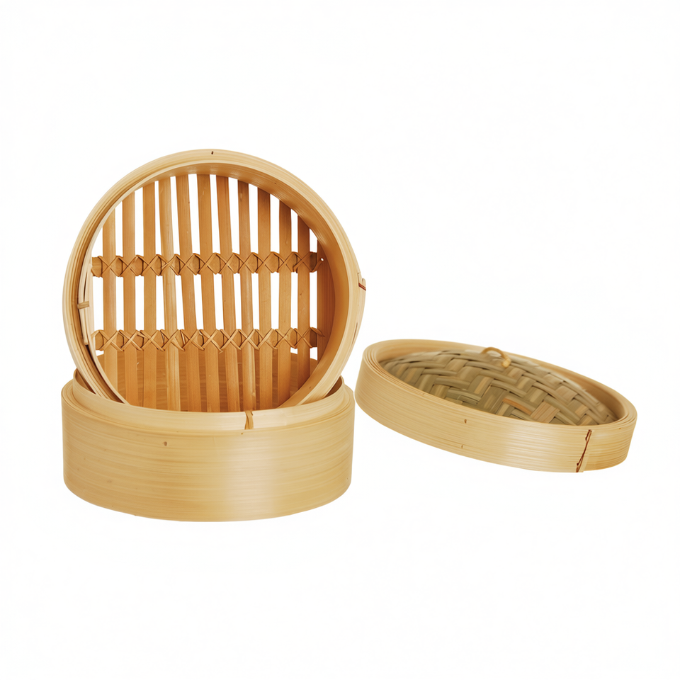 Excelsa Bamboo Steamer 20x20x17.5 Cm 2-Layer Natural Steam Basket For Asian Cooking Eco-Friendly