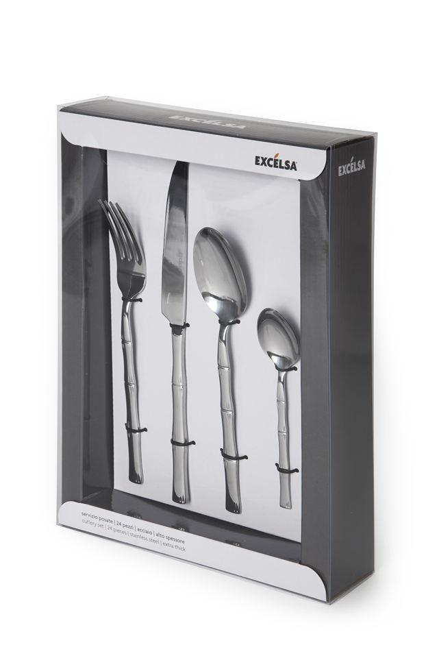 Set di Posate in Acciaio Inossidabile Color Argento, 24 Pezzi, Stile Lussuoso ed Elegante, Finitura a Specchio, Bambù by Excelsa