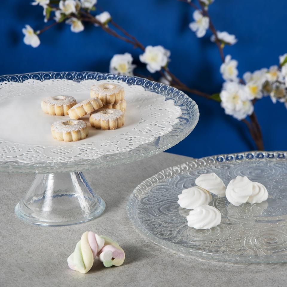 Excelsa Cake Stand Arabesque Glass 31 Cm Transparent