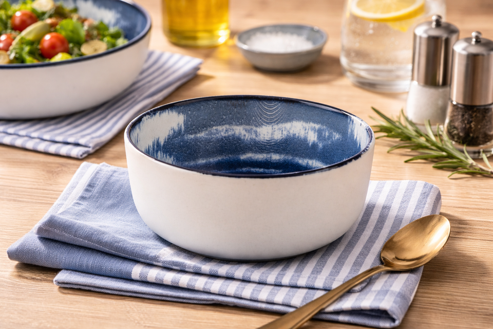 Set di 6 Ciotole in Ceramica Rotonde Regolari con Smalto Reattivo, Design Wabi Sabi, Decorazione Digitale Lucida in Rilievo, Ermes di Excelsa
