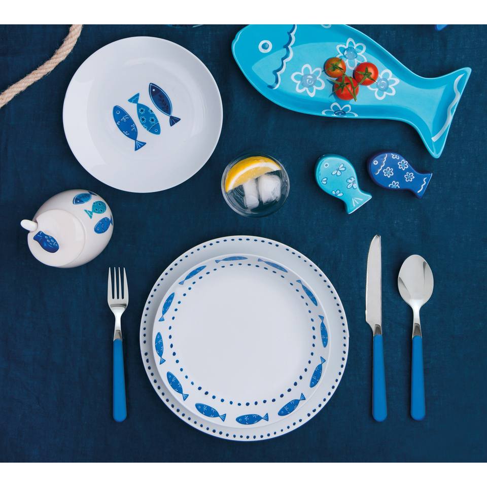 Set di Saliera e Pepiera in Ceramica Excelsa, Blu Oceano, 2x7,5x3,5 Cm, Forma di Pesce, Stoviglie Decorative