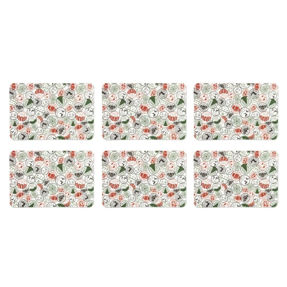 Excelsa Christmas Stamp Placemats 43x28.5 Cm Multicolor Plastic Reusable Home Decor Set Of 6