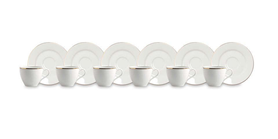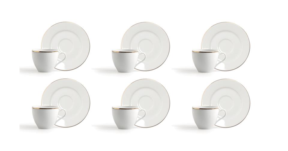 Set di 6 Tazze da Caffè Espresso in Porcellana Resistente con Piattini, 10 cl (3.38 fl oz), Design Elegante e Raffinato, Oro Excelsa