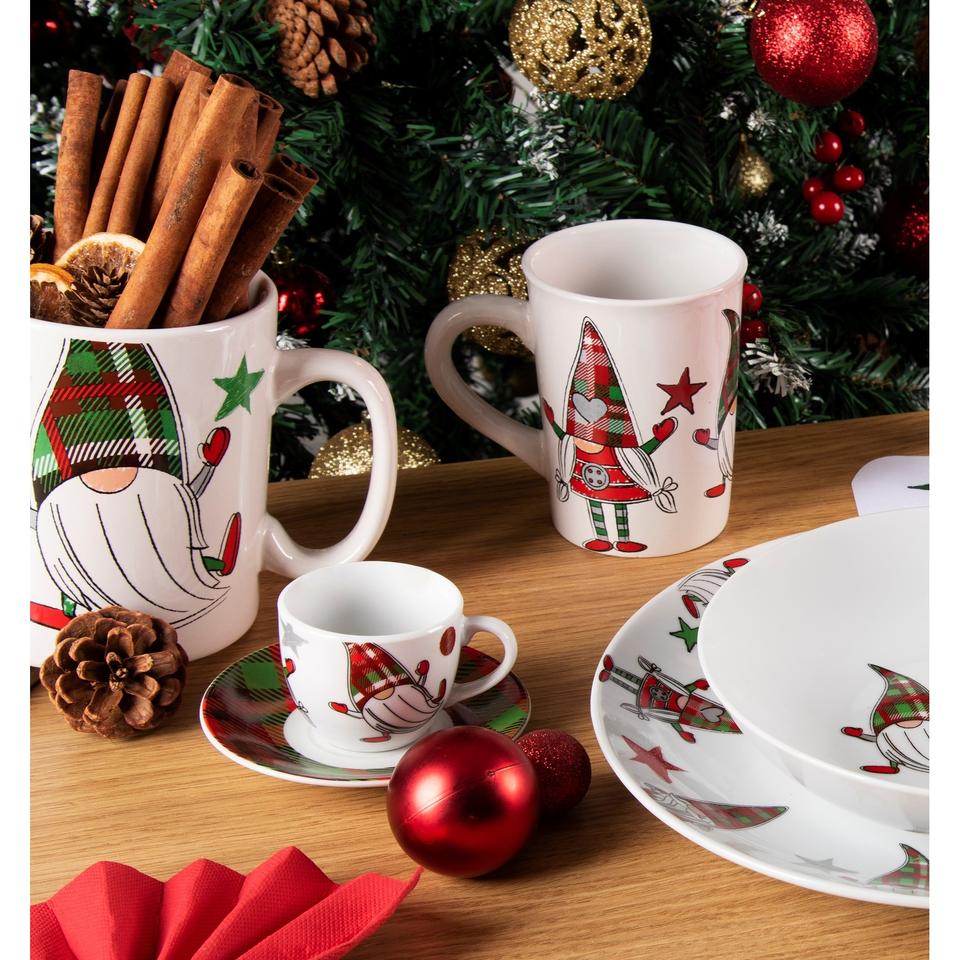 Set di Tazze da Caffè Excelsa con Piattino, Motivo Tartan Gnome, in Porcellana, 9 Cl, Multicolore