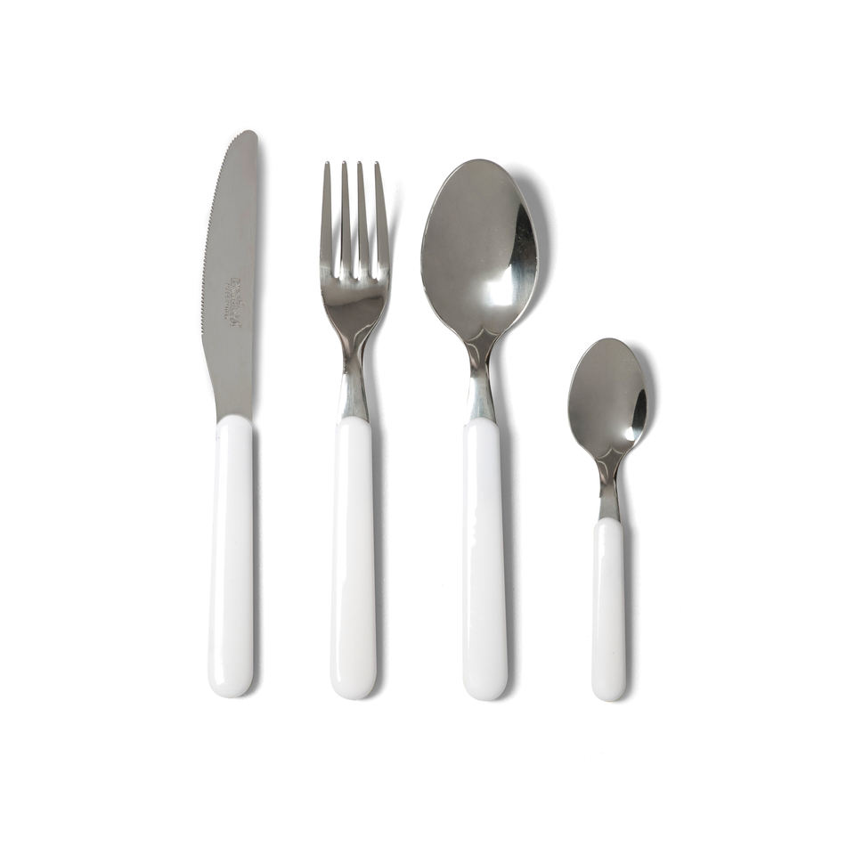Set di posate Excelsa 24 pezzi in acciaio con manici bianchi, stile moderno
