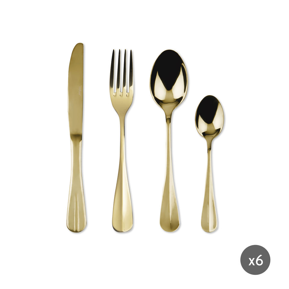 Set di Posate Excelsa 24 Pezzi in Acciaio Dorato, Eleganti Utensili da Tavola