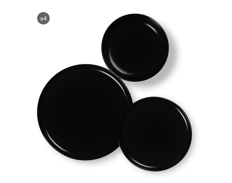 Set di Stoviglie 12 Piatti Rotondi in Ceramica Bianco e Nero Design Elegante e Minimalista Finitura Opaca Stile Nordico di Excelsa