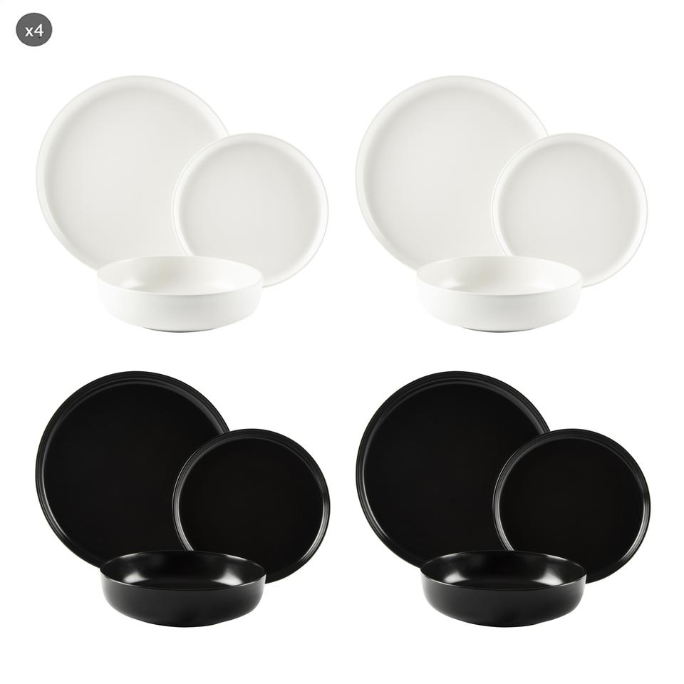 Set di Stoviglie 12 Piatti Rotondi in Ceramica Bianco e Nero Stile Elegante e Minimalista Finitura Opaca Mix & Match Nordico di Excelsa