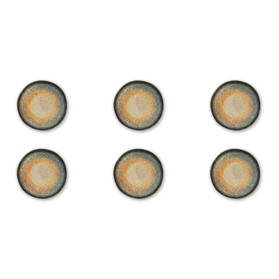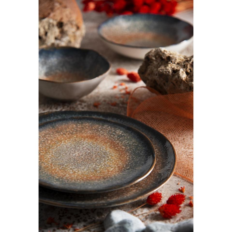 Set di 6 Piatti da Dessert in Ceramica con Bordo Irregolare, Design Moderno con Smalto Reattivo Lucido e Rilievo Digitale, Excelsa Efesto