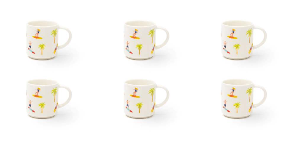 Durable New Bone China Set 6-pcs Espresso Coffee Mug 10 cl (3.4 fl oz) Minimalist Tropical Beach Lifestyle Honolulu by Excelsa