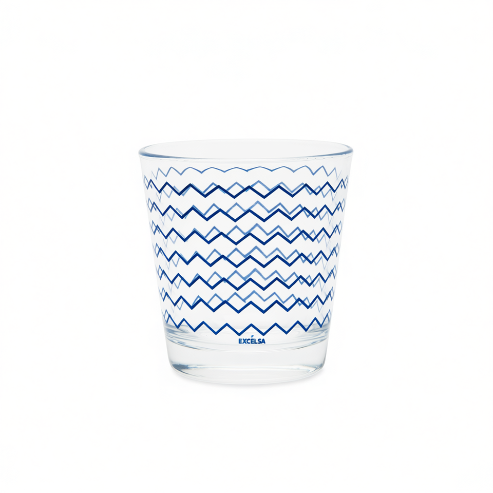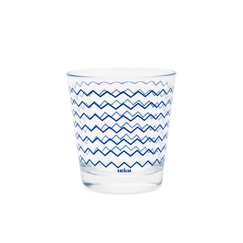 Set di bicchieri in vetro Excelsa, 6 pezzi, 25 cl, blu con motivo a zig-zag