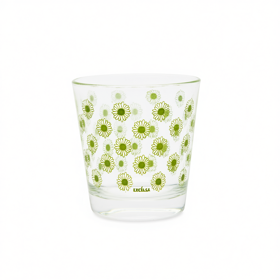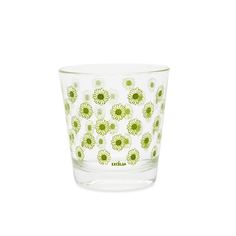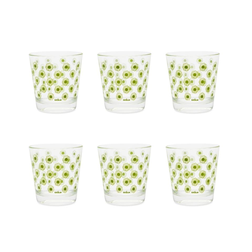 Excelsa Transparent Glass Tumbler 25 Cl Green Daisy Pattern Cold Drinks Unisex Dishwasher Safe