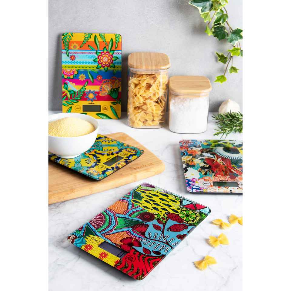 Excelsa Kitchen Scale Kimono Glass 21.5x1.8x15 Cm Multicolor Digital Weighing Scale For Cooking Baking