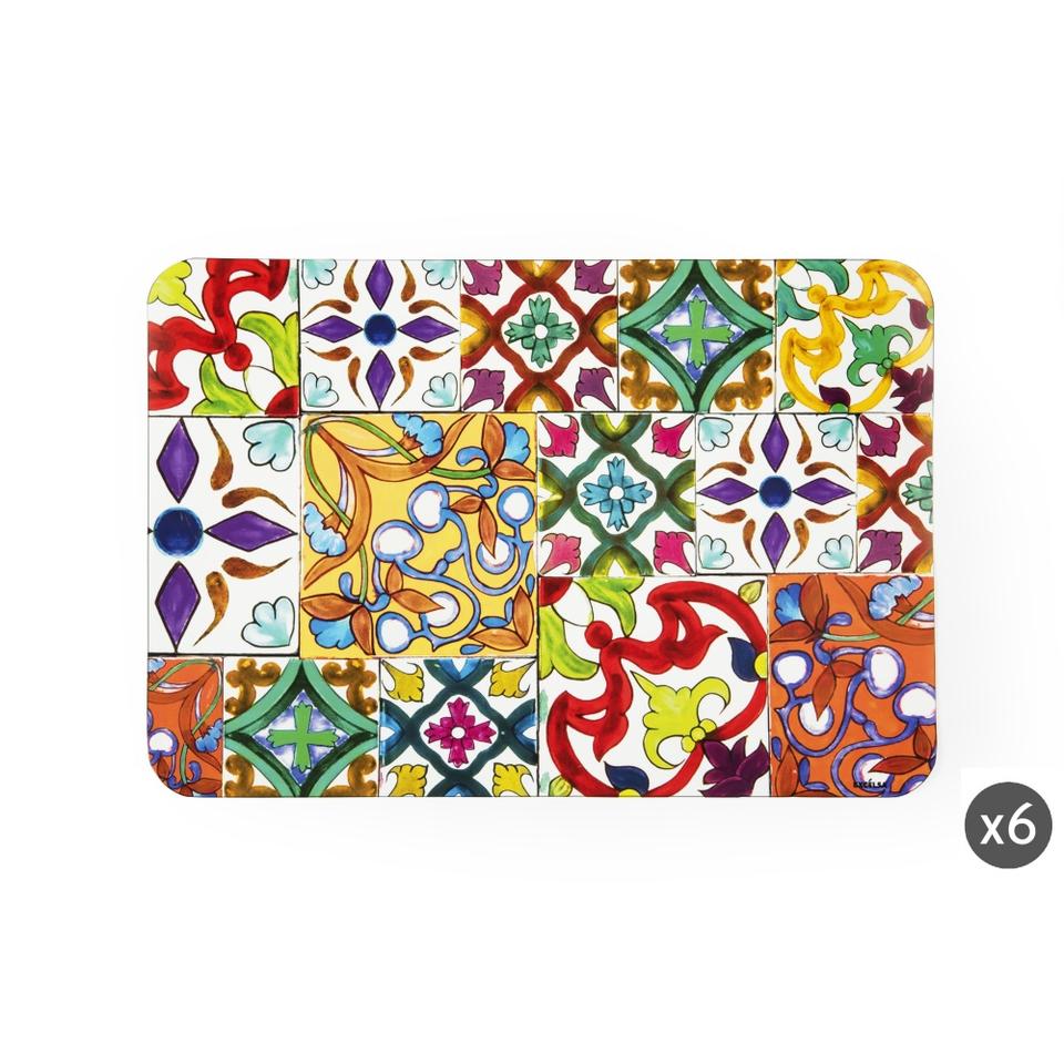 Set di 6 tovagliette Excelsa Lisbona in plastica 43x28,5 cm multicolore floreale stile mediterraneo lavabili per uso domestico