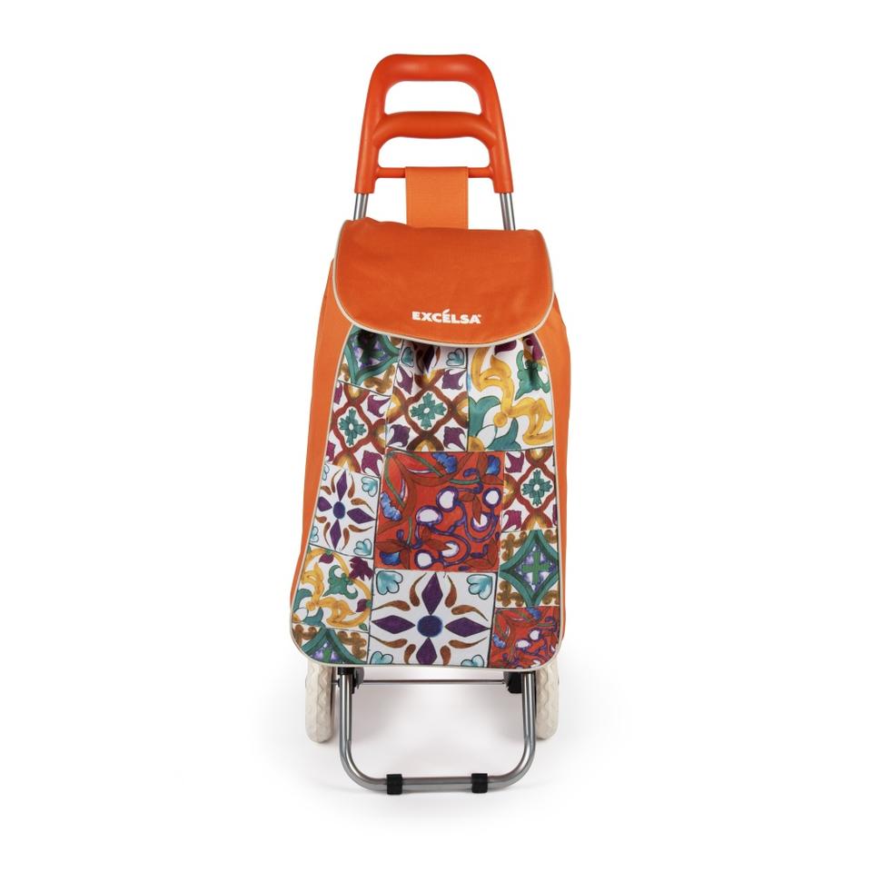 Excelsa Lisbona Portable Shopping Cart Multicolor 28x96x36 cm Foldable Aluminium Plastic Fabric Steel Mesh for Supermarket Use