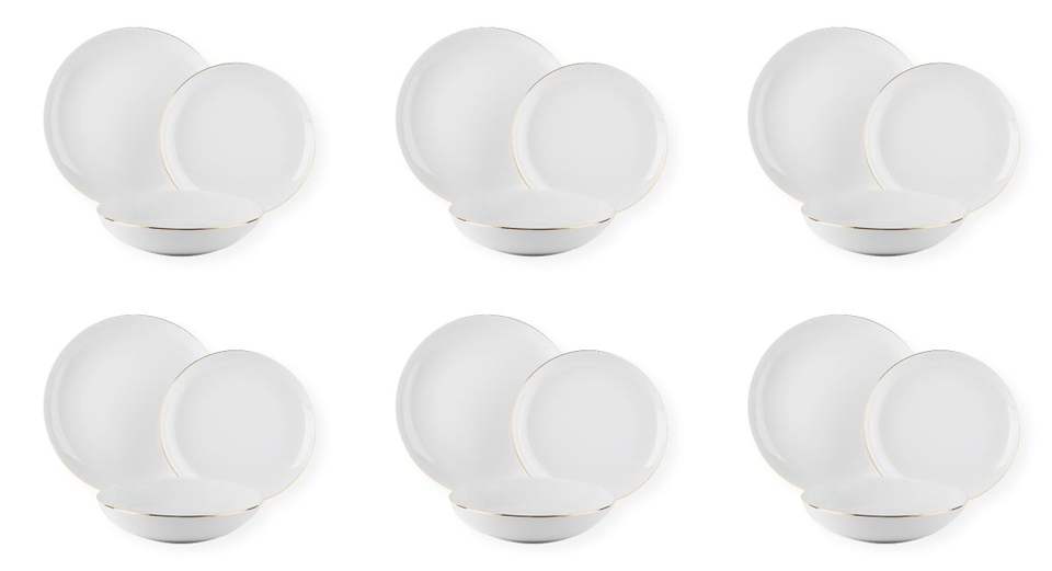 Set da Pranzo 18 Pezzi Piatti Rotondi Bianchi con Bordo Dorato Durevoli Moderni Lussuosi in Ceramica e Oro Rotondi per Matrimonio di Excelsa
