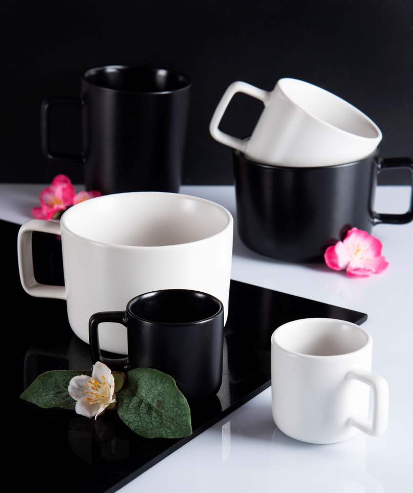 Set di 6 tazze da caffè in gres, resistenti, da 8 cl (2.70 fl oz), design elegante e minimalista, finitura nera opaca, stile nordico, di Excelsa