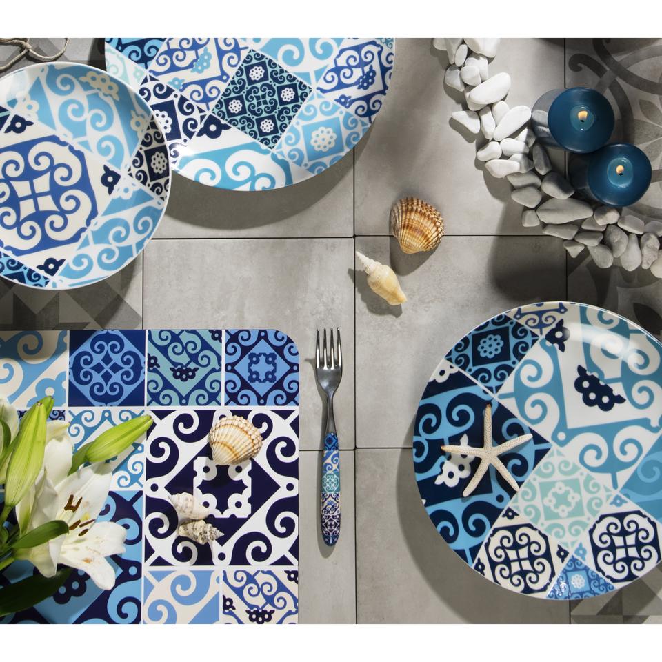 Set di 6 tovagliette Excelsa in plastica blu maiolica 43x29 cm, rettangolari, geometriche, stile mediterraneo, riutilizzabili
