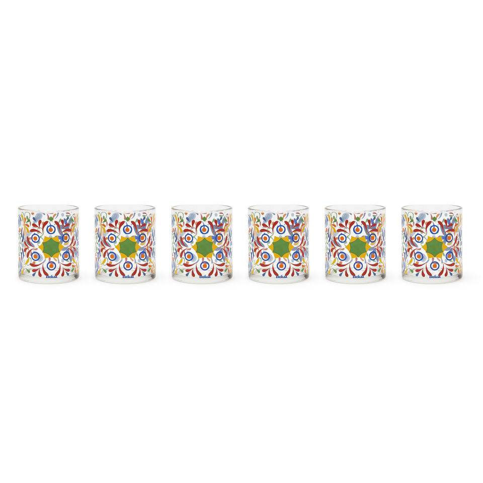 Excelsa Puebla Glass Set Of 6 25 Cl Multicolor Decorative Drinking Glasses For Parties And Table Decor