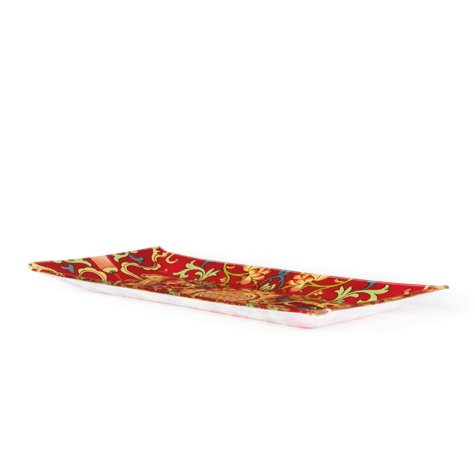 Vassoio di Servizio Excelsa La Via Della Seta 30x2.5x15 Cm Piatto Decorativo in Vetro Multicolore
