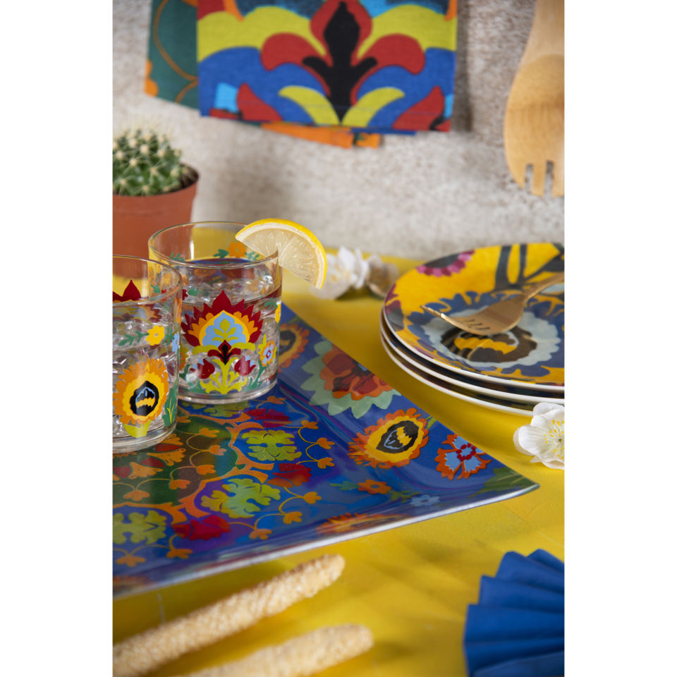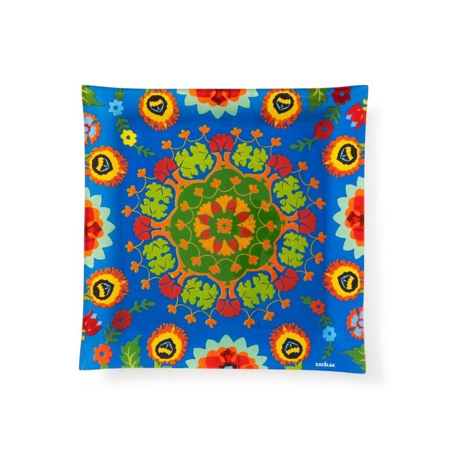 Excelsa Serving Tray New Delhi Glass 30x2.5x30 Cm Multicolor