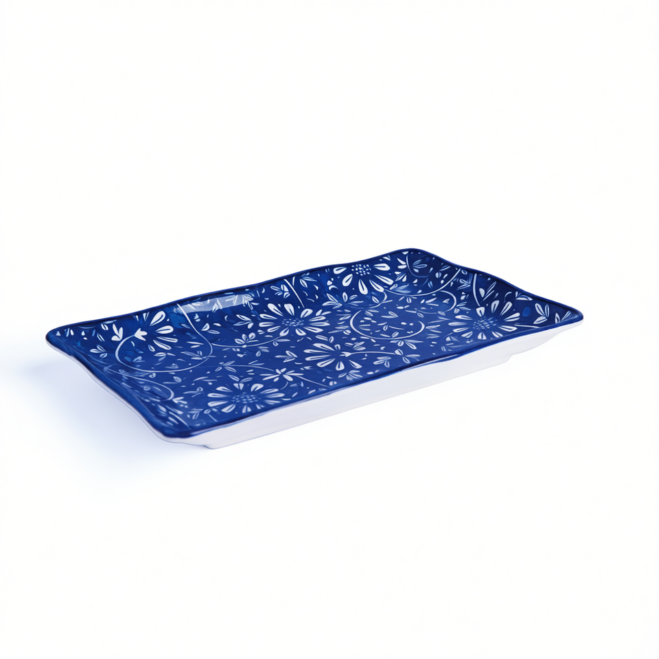 Excelsa Serving Tray Sushi Oriented Fiori Porcelain 20x12x2.5 Cm Blue