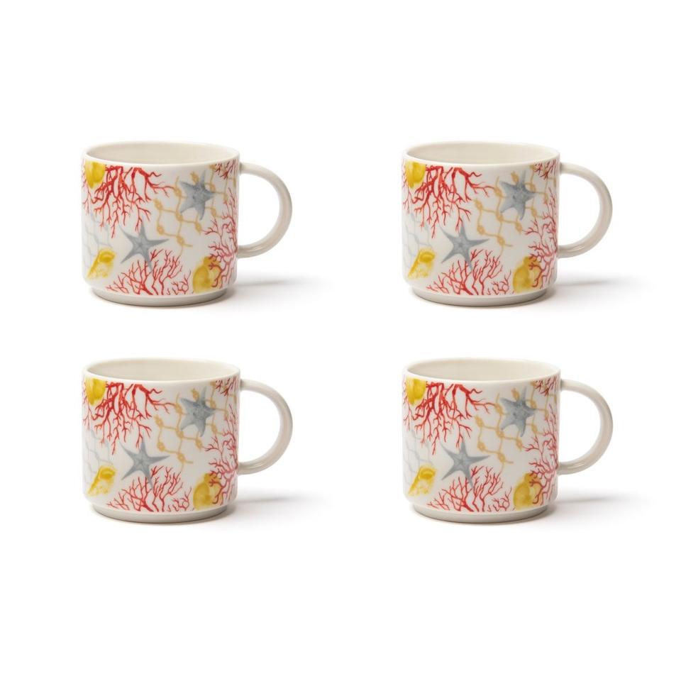 Excelsa Set of 4 Ceramic Tea Cups 29 Cl Multicolor Coral Porcelain Durable and Stylish China