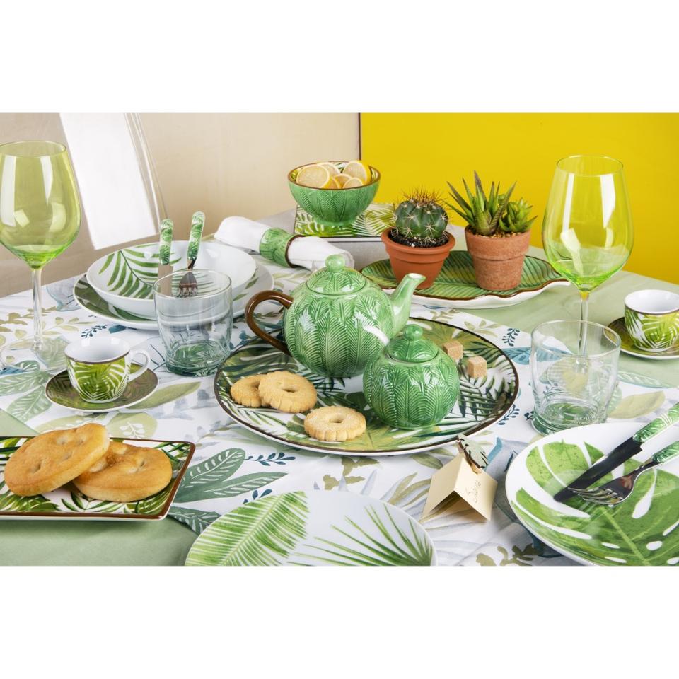Set di 6 Piatti da Portata in Ceramica con Fogliame Verde 20x12,5 cm per Decorazioni e Servizio da Tavola