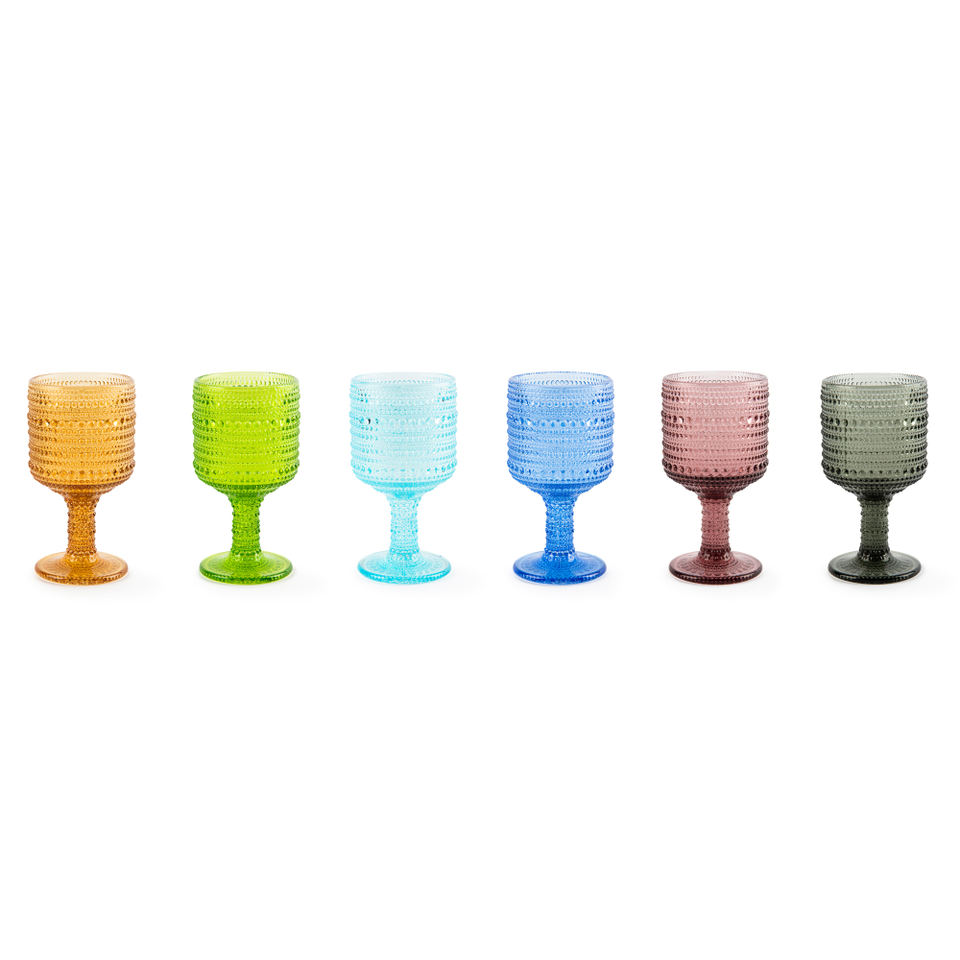 Excelsa Set of 6 Hand Blown Aurora Glass Goblets 30 Cl Multicolor Customizable Logo for Wine Serving