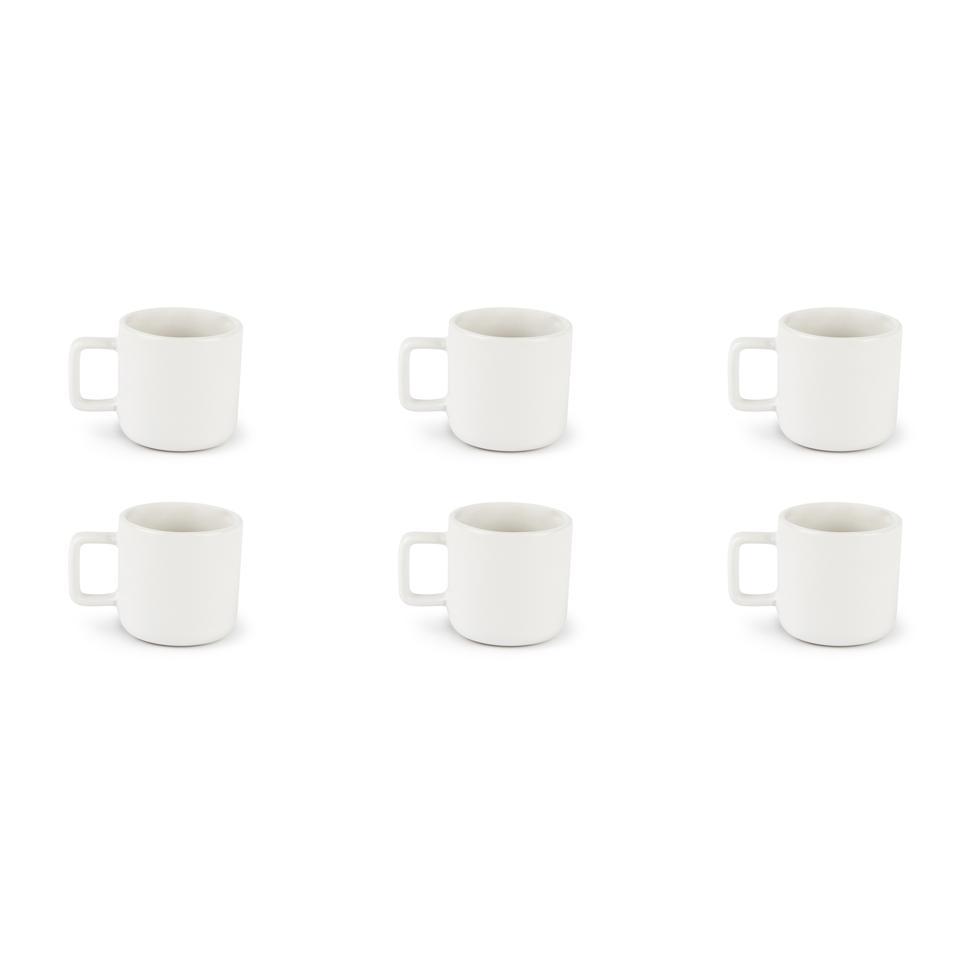 Excelsa Set of 6 Modern Nordic Stoneware Coffee Cups 7 Cl White Dishwasher & Microwave Safe with Lids