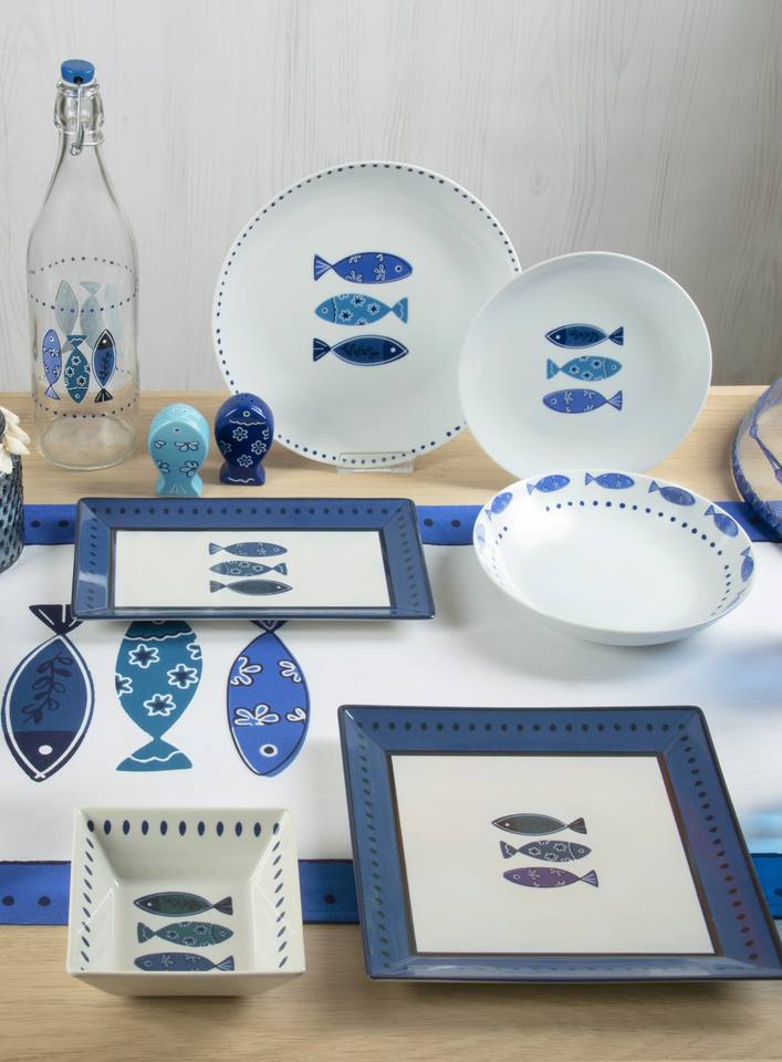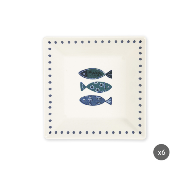 Set di 6 Piatti Quadrati in Ceramica per Zuppa con Stampa Digitale, Tema Mediterraneo Multicolore Marino di Excelsa