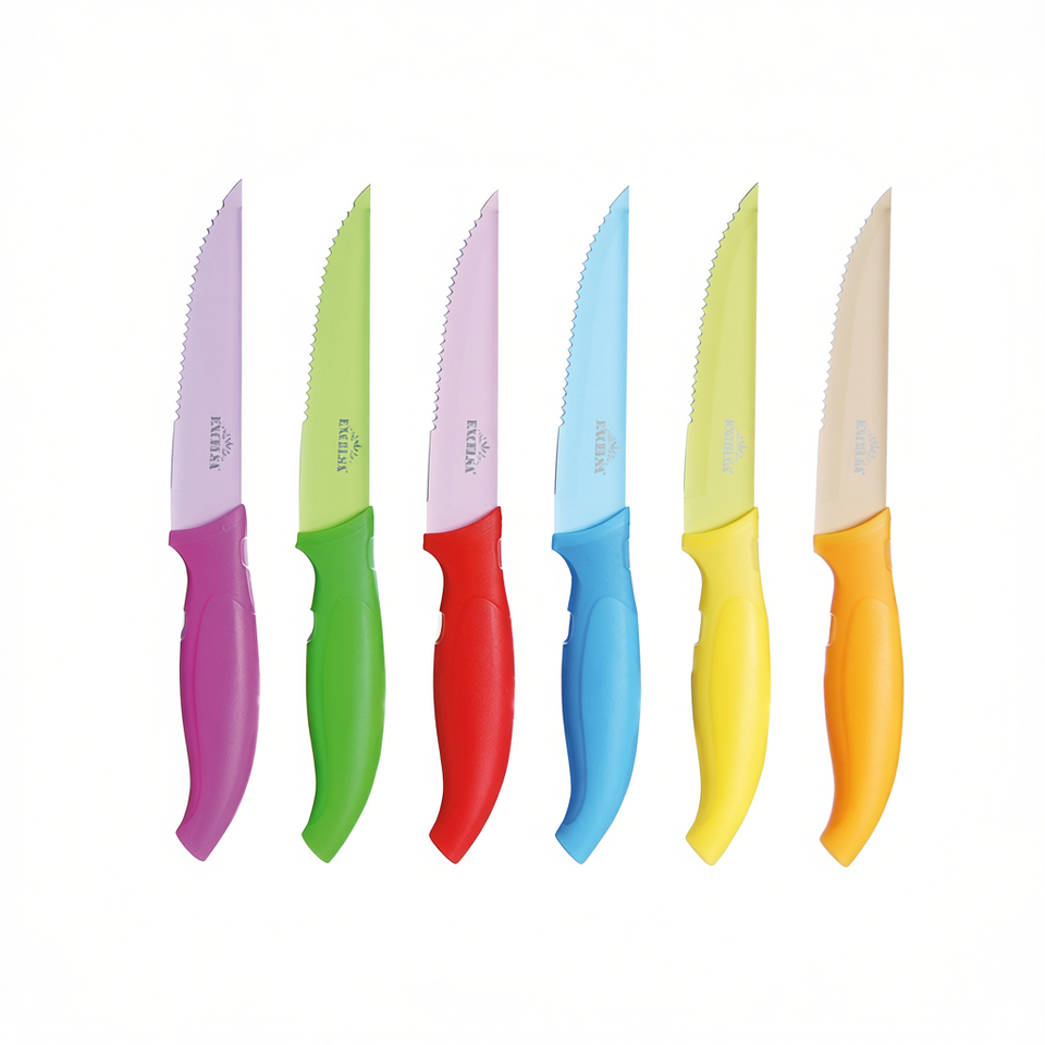 Excelsa Steak Knife Set 6 Pc Multicolor Serrated Blades For Kitchen Use