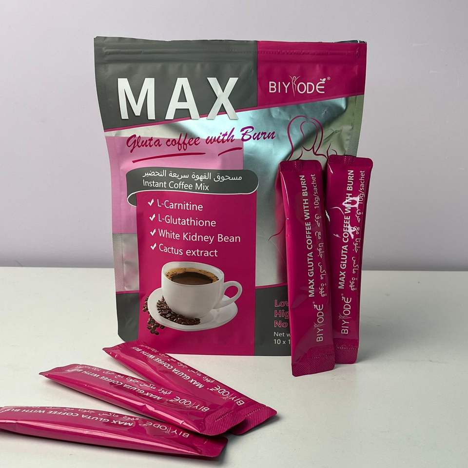 Caffè MAX Gluta per l'accumulo di grasso e l'aumento di peso con supporto brucia-grassi, favorisce la gestione del peso e supporta il bruciamento dei grassi.