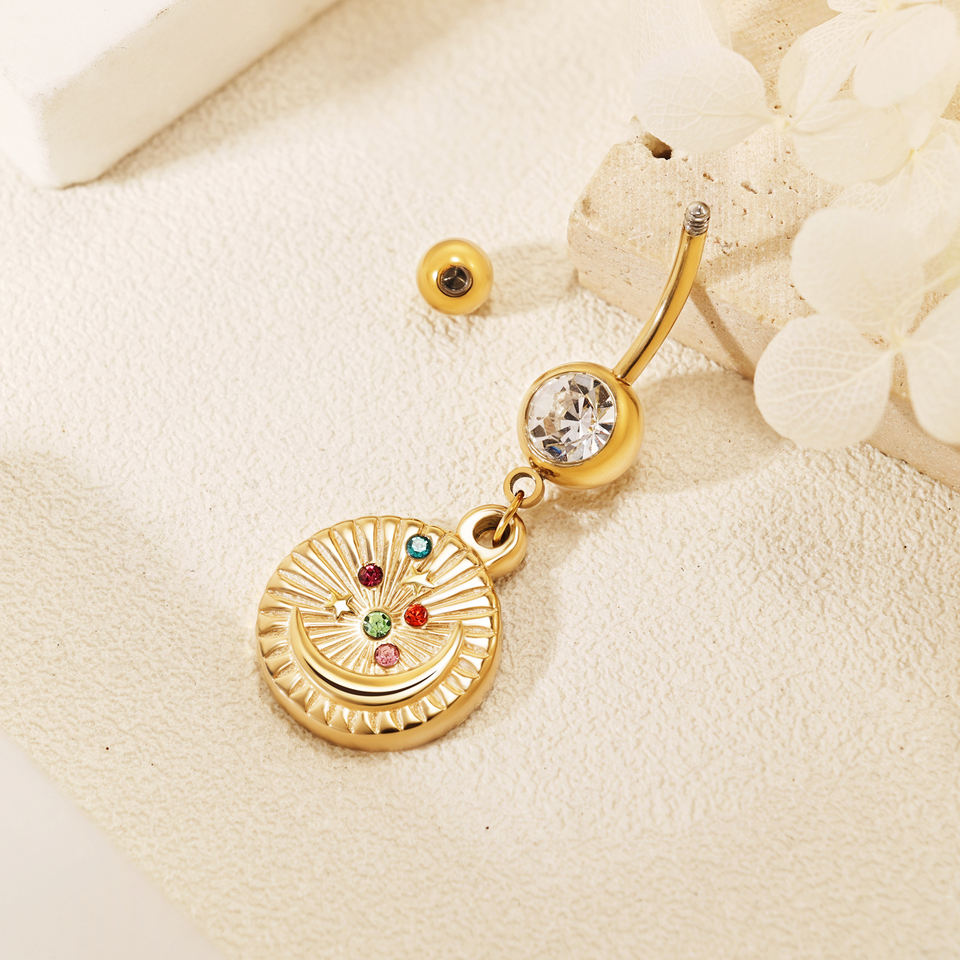 Design Esclusivo: Piercing all'Ombelico in Acciaio Inossidabile Placcato, Calibro 14, Gioielli per Piercing all'Ombelico