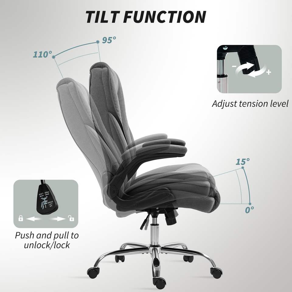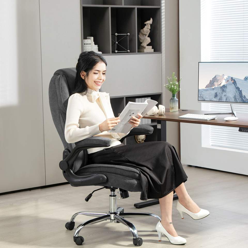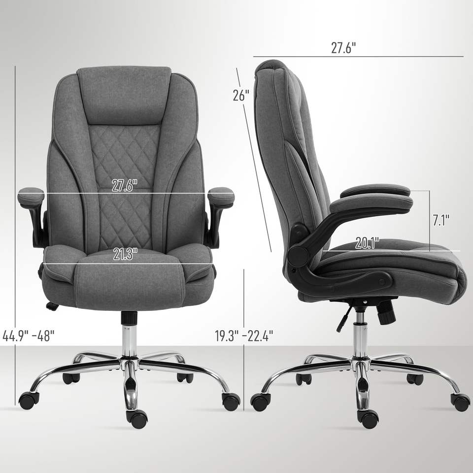 Executive Charcoal Gray Desk Chair with Flip-Up Armrest Diamond Fabric Computer Office Chair for Home Comfortable and Stylish