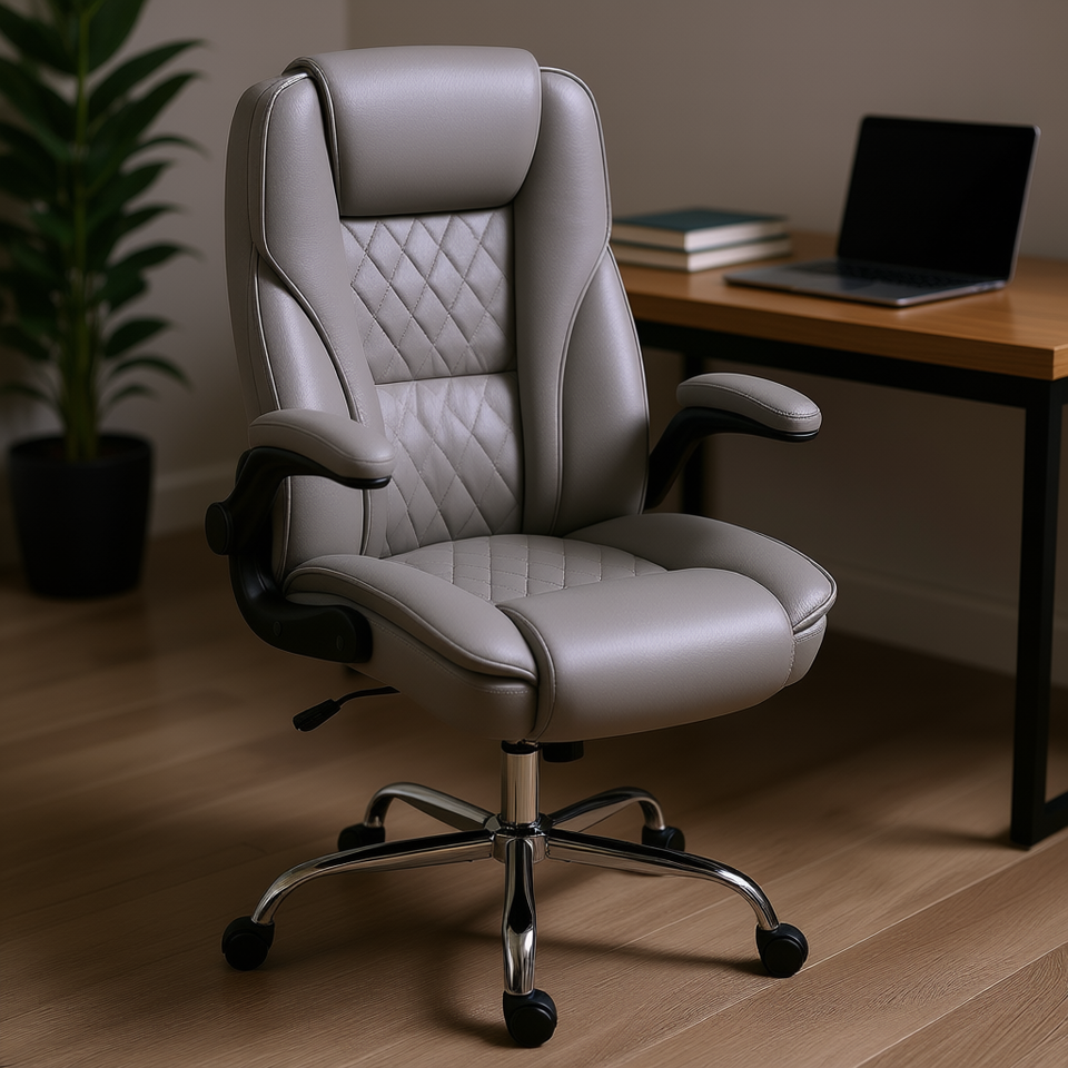 Executive Gray Ergonomic Desk Chair Pu Leather Cushion Back Adjustable Armrest Swivel 5-Star Base Office Chair Home Office