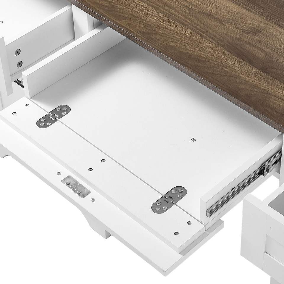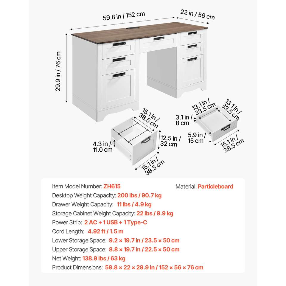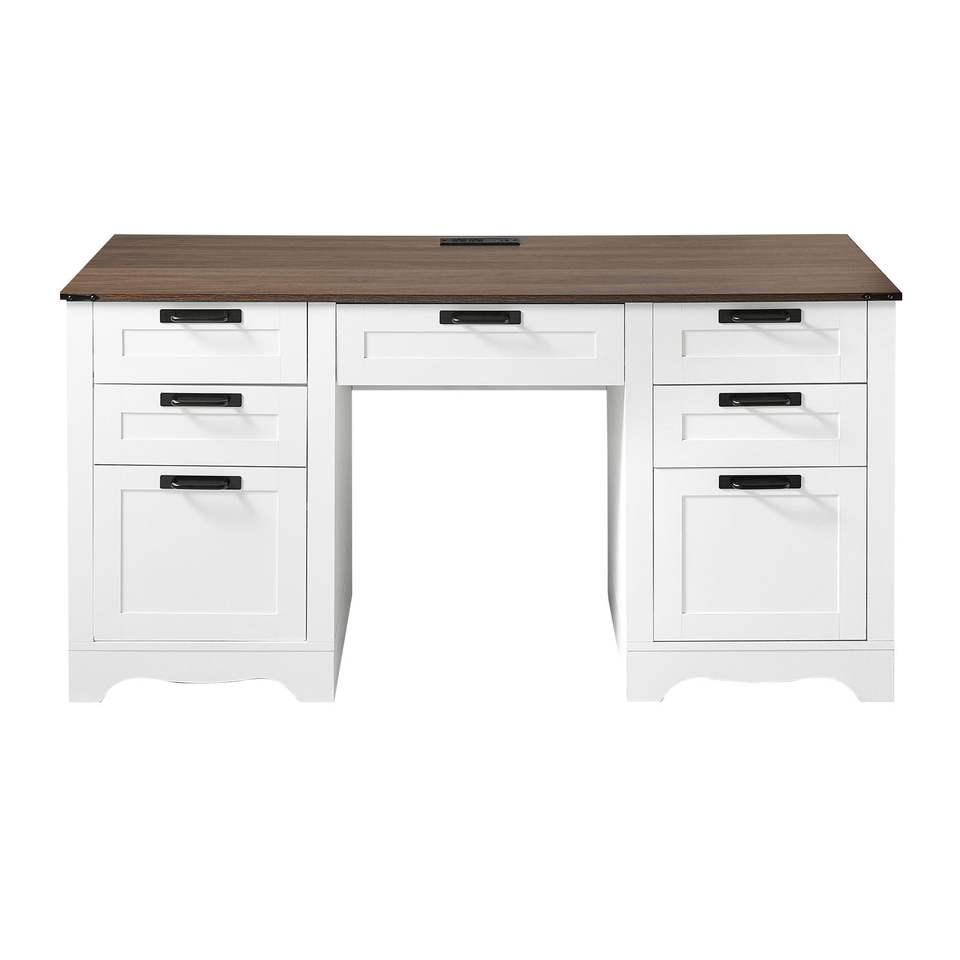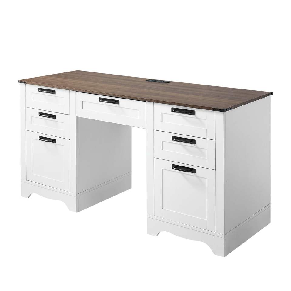 Scrivania da Ufficio Direzionale Robusta in Truciolato con Stazione di Ricarica, 2 Cassetti Contenitori, Stile Rustico/Country