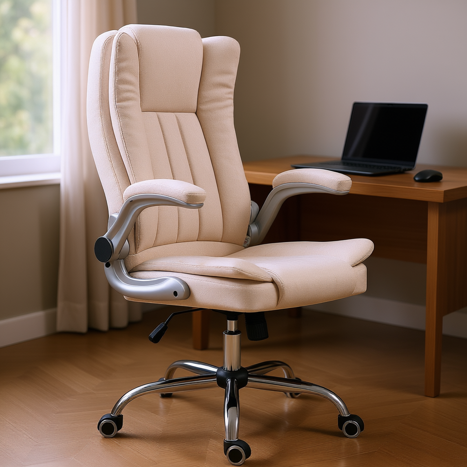 Sedia da Ufficio Direzionale in Microfibra Bianca, Regolabile in Altezza, Braccioli Imbottiti Ribaltabili, Base a 5 Razze, Ruote, Funzione Inclinazione, per Ufficio e Casa