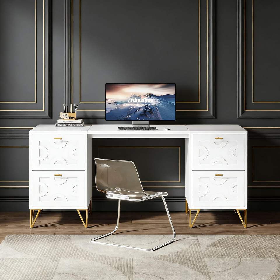 Scrivania Direzionale in Legno con Cassetti Portadocumenti per Ufficio Domestico