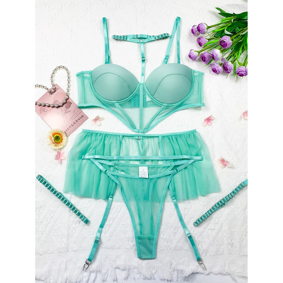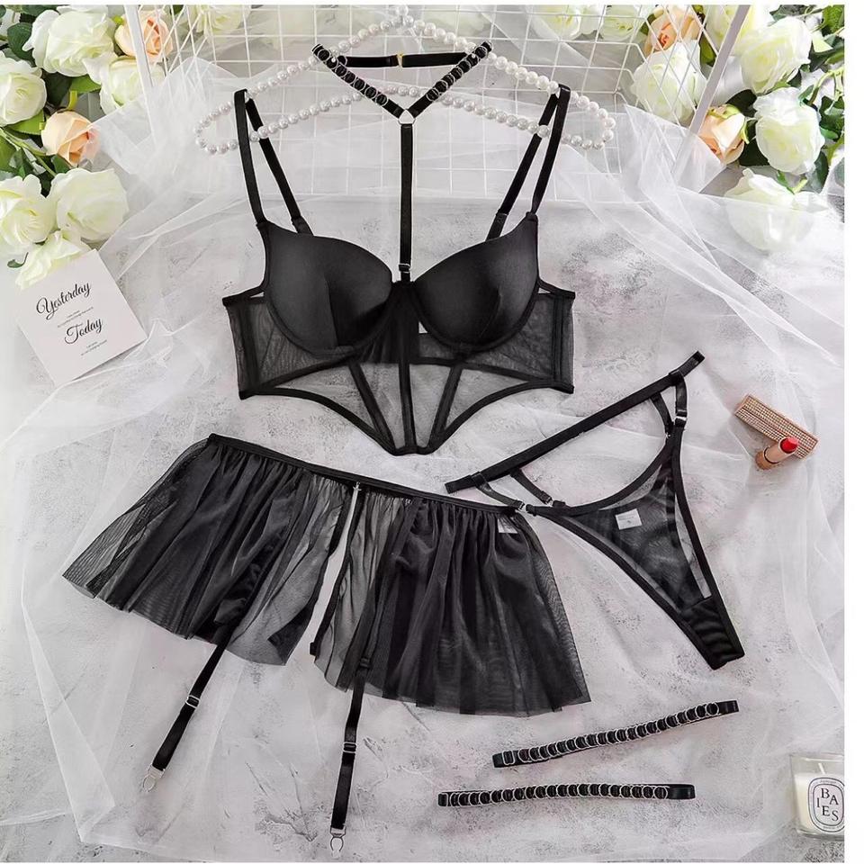 Exotic 4-Piece Sexy Womens Erotic Lace Underwear Set Adjustable Transparent Bra Panties Wholesale OEM Export