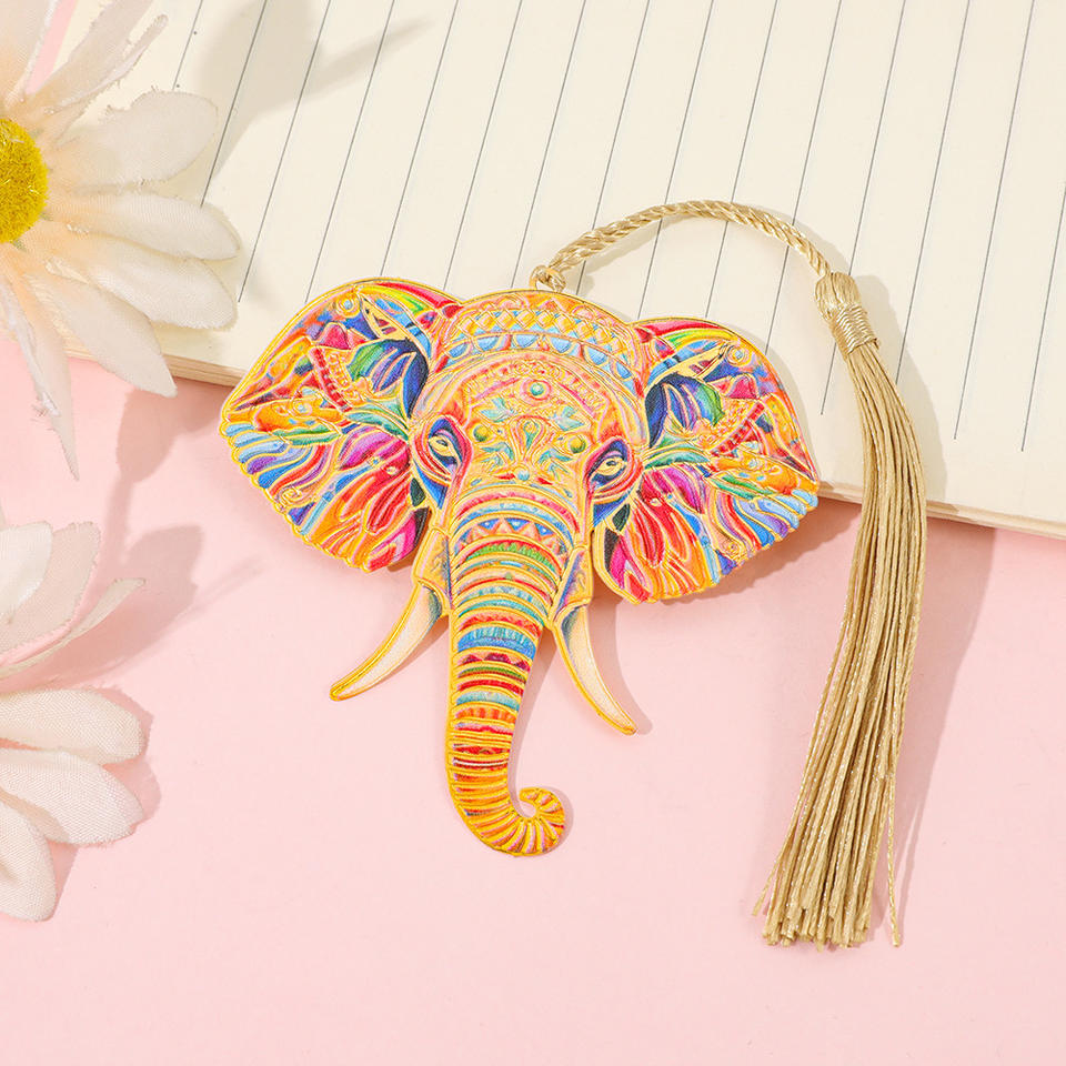 Segnalibro in Lega Smaltata Stile Esotico con Elefante, Vintage Etnico Colorato Mandala, con Nappe Dorate