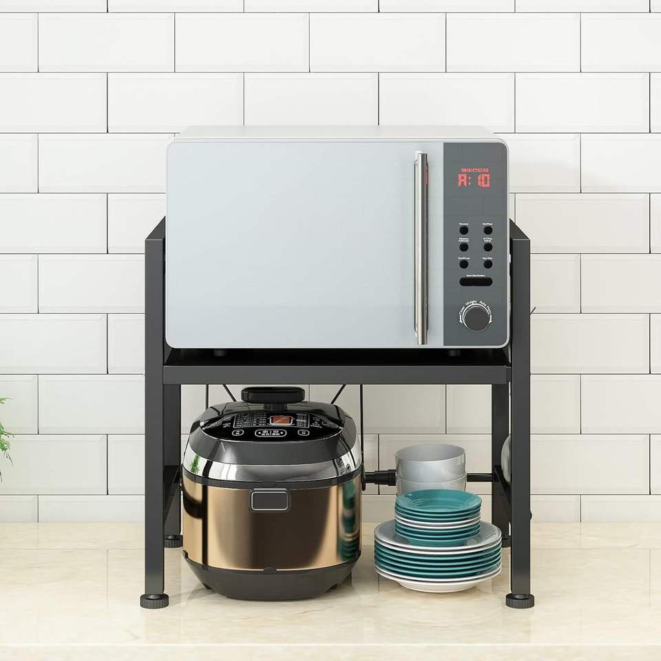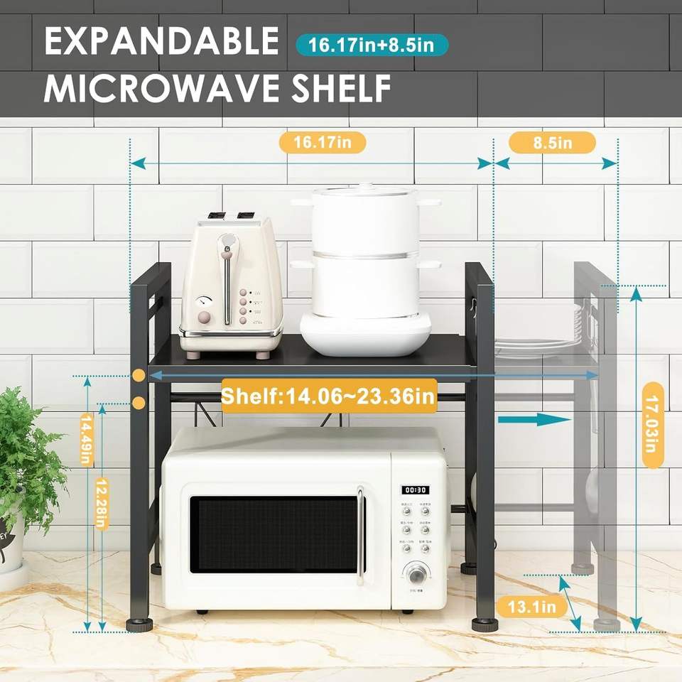 Mensola Espandibile in Acciaio al Carbonio per Microonde, Supporto a 3 Livelli per Organizzazione Efficiente di Utensili e Stoviglie da Cucina