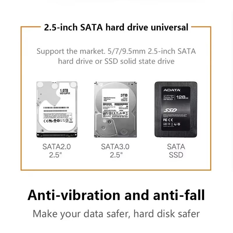Box esterno USB-C ad alta velocità per disco rigido SATA da 2,5 pollici | Installazione senza attrezzi, scocca in PC antiurto con indicatore