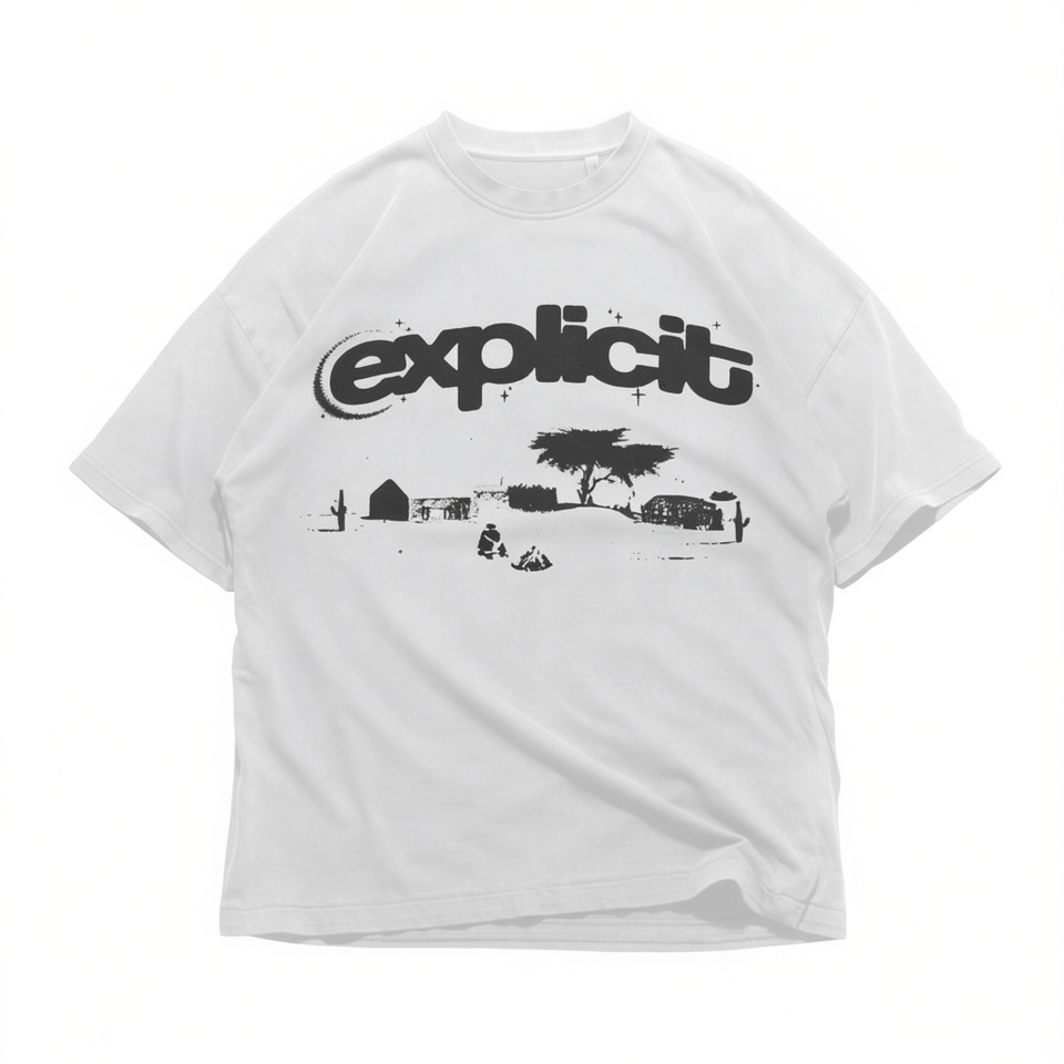 Maglietta grafica explicit unisex in cotone a maniche corte con scollo rotondo, design artistico streetwear Y2K