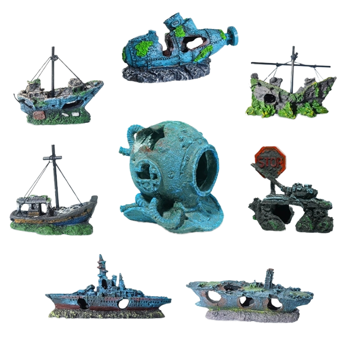 Explosions Simulation Shipwreck Ornaments Aquarium Aquarium Decorative Landscaping Worn-out Ship Submarine Resin Sailing Shelter
