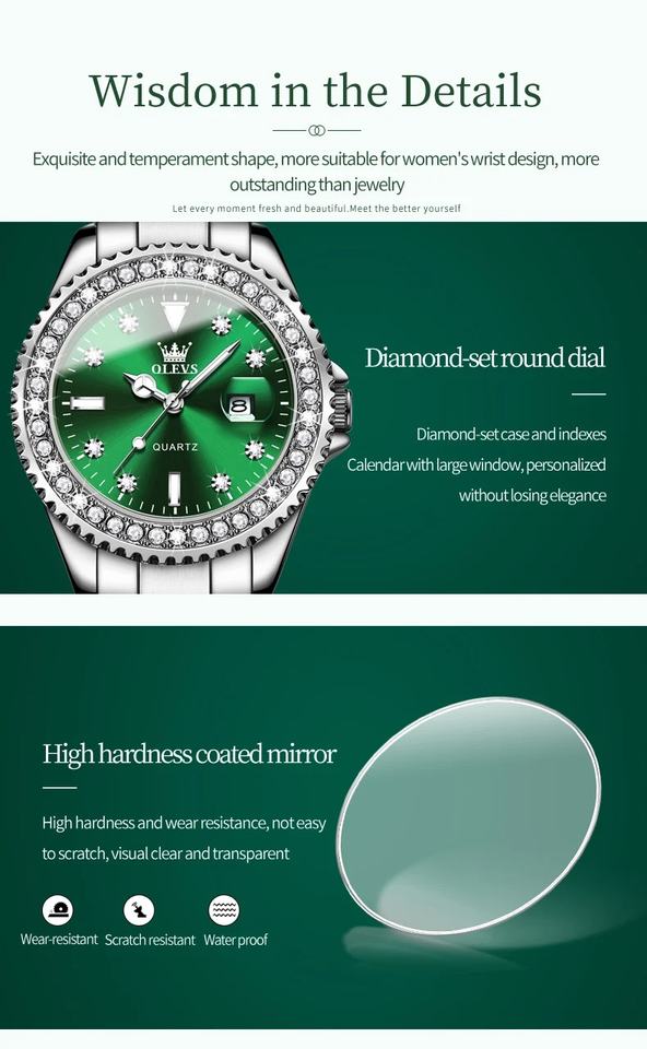 9945 esplosiva 50 pezzi orologio con logo personalizzato da donna di moda verde rotonda di marca di lusso in acciaio inossidabile orologio Casual orologio da donna