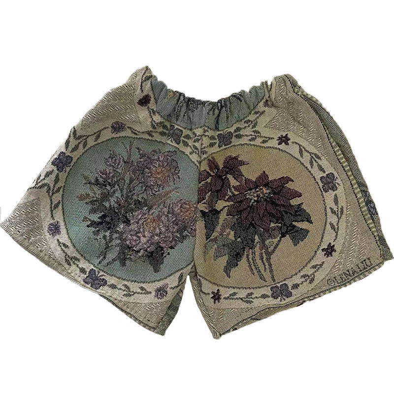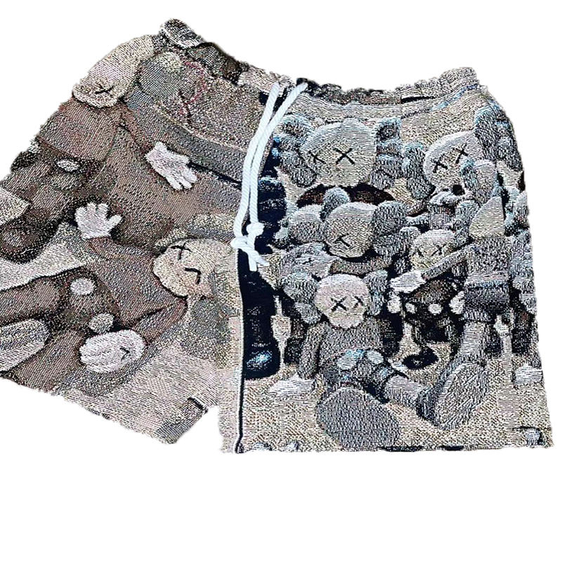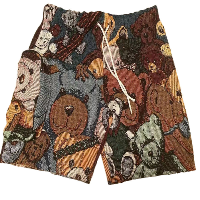 Pantaloncini in Tessuto Jacquard con Motivi Cartoon, Vita Elastica, Design Personalizzato, Materiale Riciclato, Stile Hip Hop